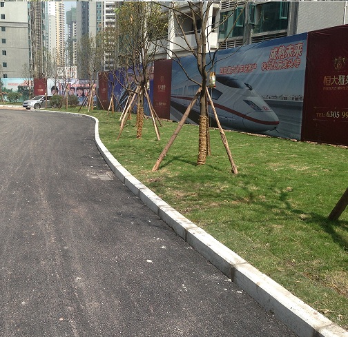 我厂为恒大地产提供的仿花岗石路沿石全面安装到位,本照片为安装现场拍摄。